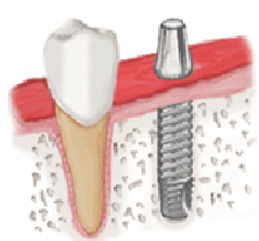 Implants are artificial tooth roots (screws), made of pure titanium or titanium-alloy, which are inserted (anchored) into the jaw, where they perform the function of the natural tooth that has been lost.